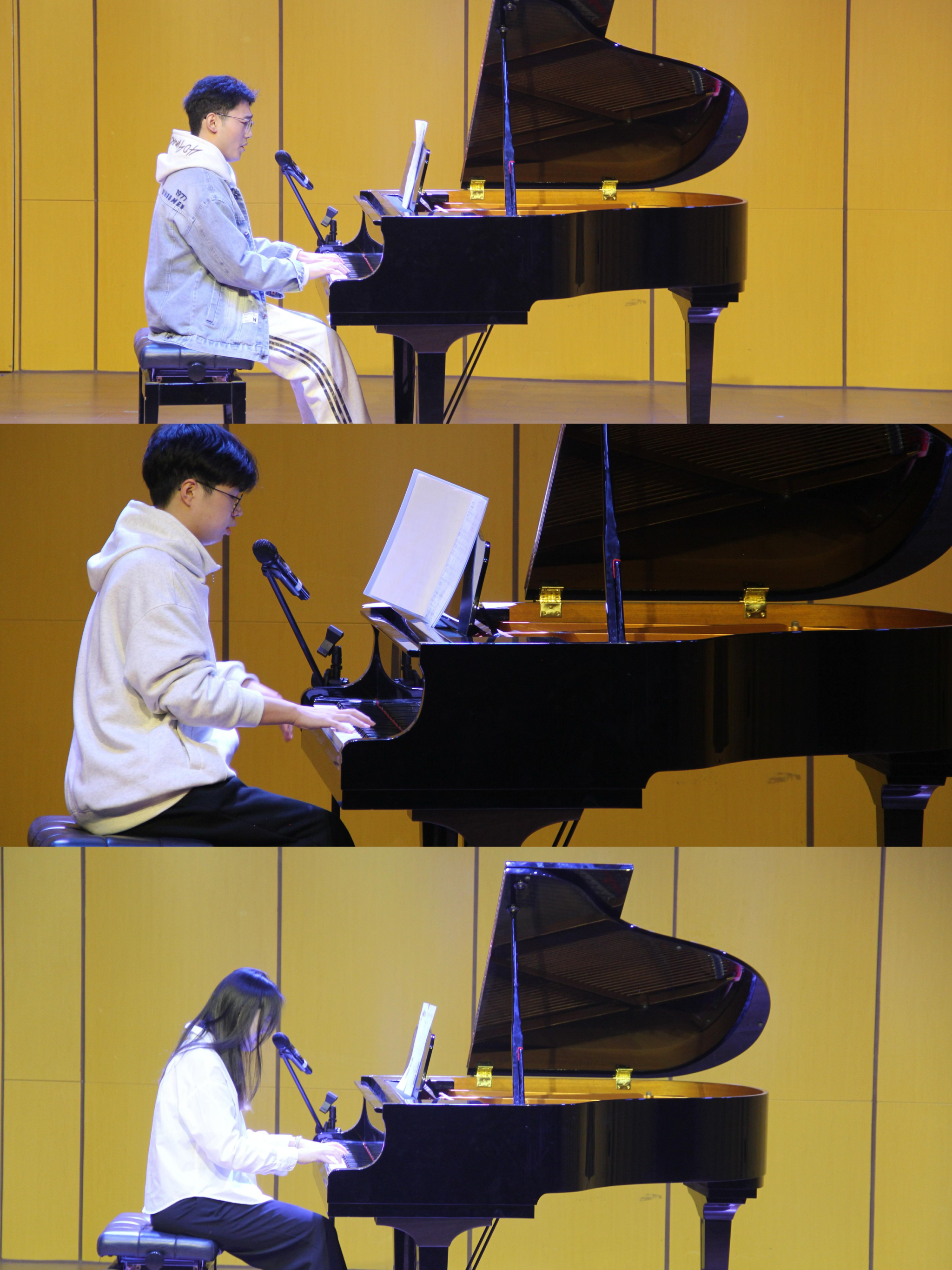 舞台上,选手们全情投入,凭借着出色的音乐素养和灵动的创作灵感,即兴弹奏出一段段动人的旋律,歌声时而高亢激昂,时而婉转低回,与钢琴的弦音完美融合,每一个音符都仿佛是现场迸发的灵感火花。最终,22级音乐学2班王晨获得了第一名、23级音乐学2班陈鹏程获得第二名,22级音乐学4班高慧获得了第三名。