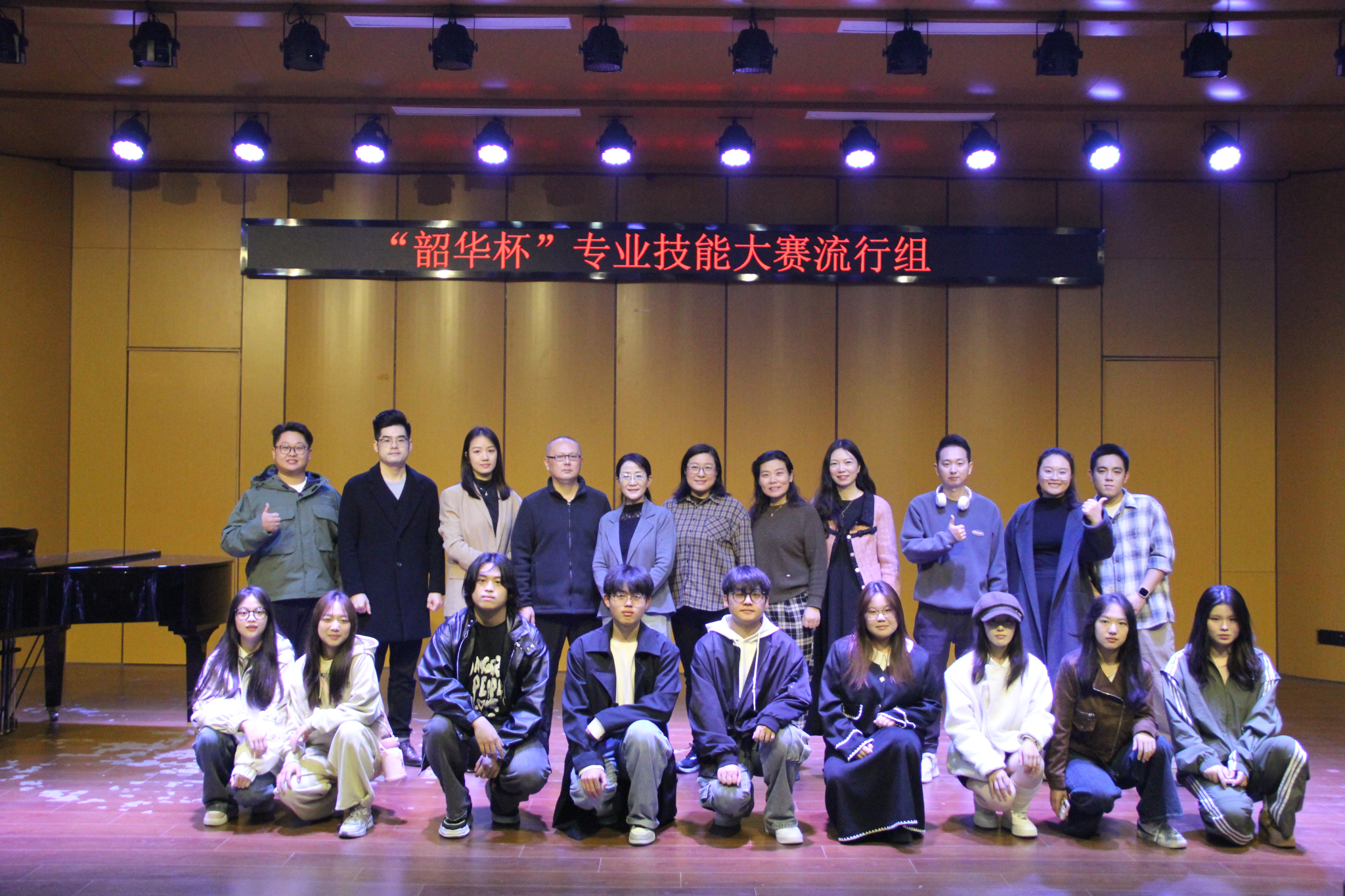 为提升学生的艺术实践能力,进一步检验学生的专业学习成果,提供锻炼能力、施展才华的舞台,11月14日晚,2024年“韶华杯”专业技能大赛流行组比赛在音乐舞蹈学院音乐厅举办。声乐教研室胡以芳、王静、孙广涛、刘玉龙、姚海燕、王薏萍、席亚倩、王林开、王泽平、季一言、孟子语担任本次比赛评委。