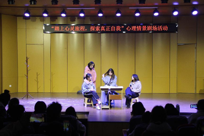 心理情景剧为同学们提供了一个角色扮演的平台,大家可以借助舞台重现生活场景、展示心理现象、讨论新异观点,丰富了学生校园文化生活,创新学校心理健康教育形式,积极引导学子关注自身心理健康,营造了健康和谐的校园氛围。。