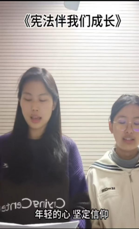 开展《宪法伴我们成长》歌曲传唱。歌曲是人民的心声,一曲歌曲就是一段鲜活的历史。12月2日—5日期间,通过线上参与的方式,同学们学唱了《宪法伴 我们成长》,感受宪法魅力,营造宪法学习氛围,提升宪法学习效果。