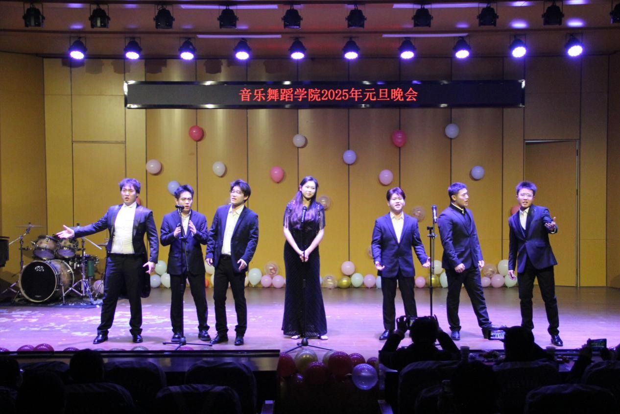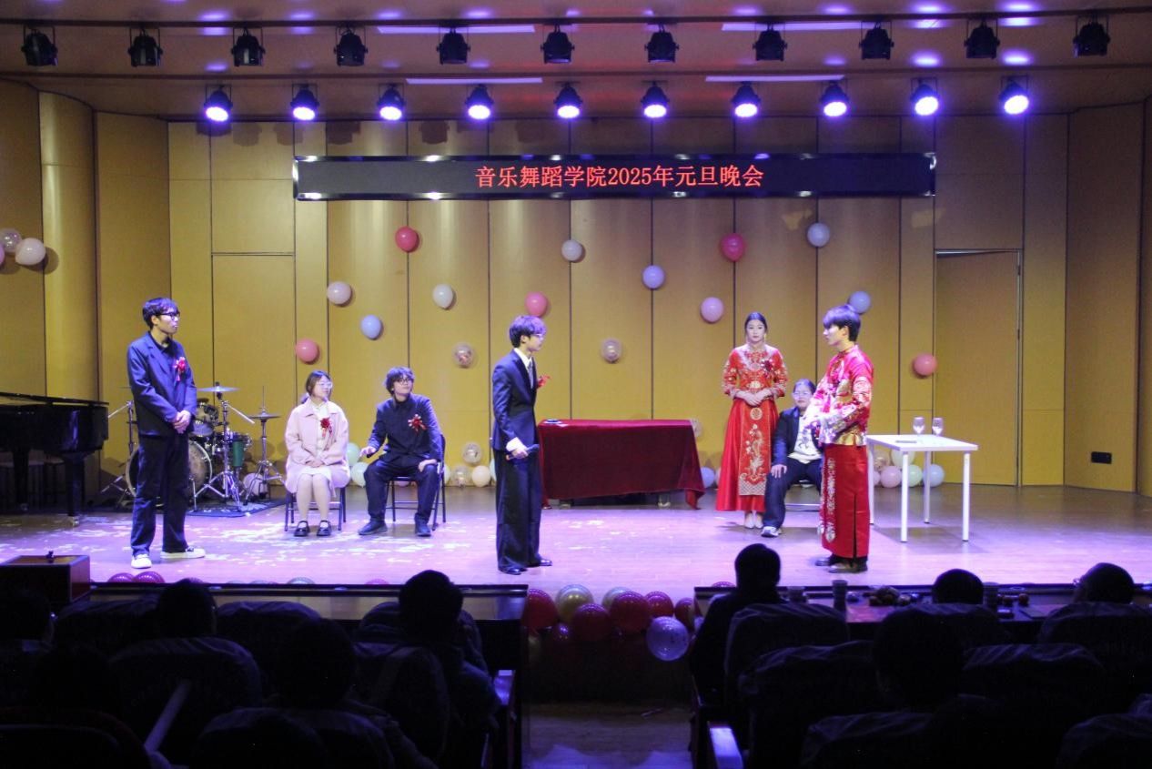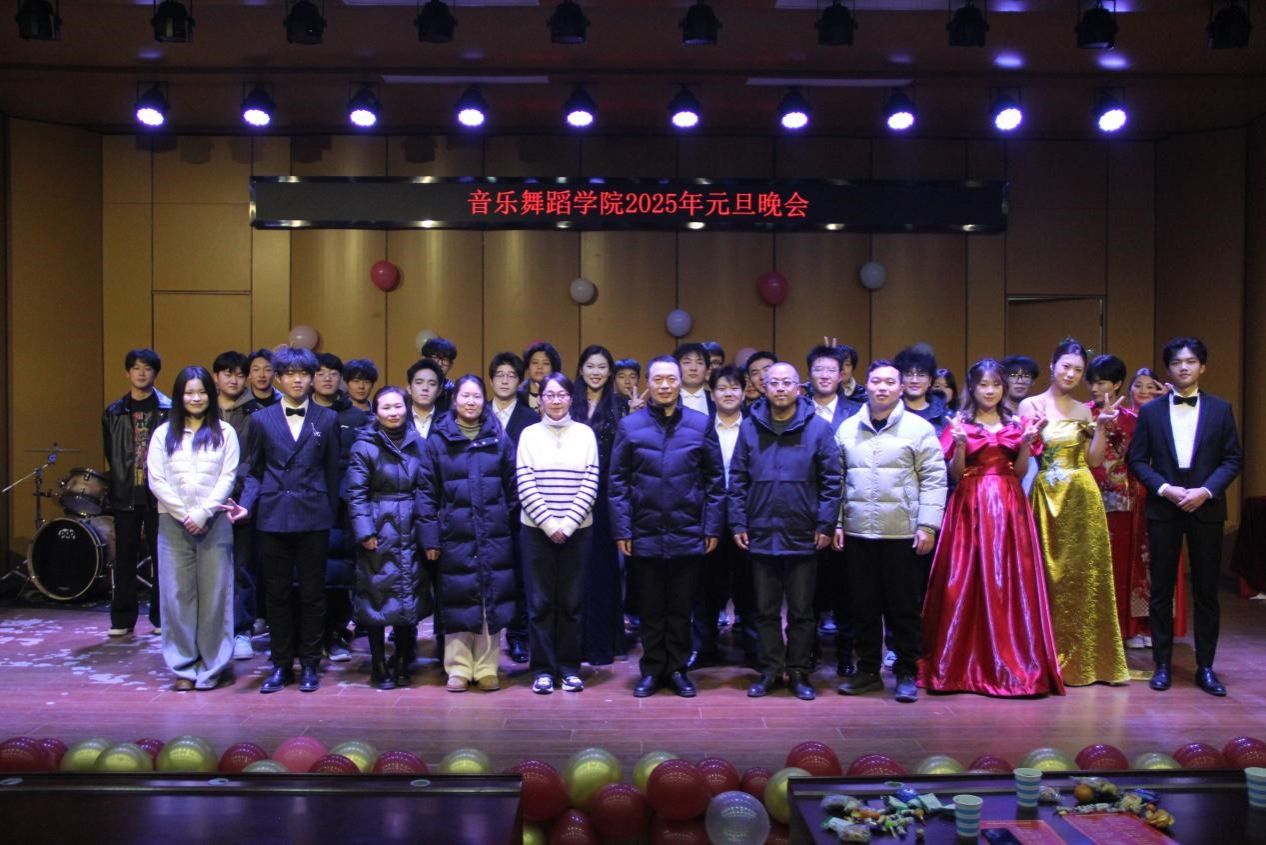 为了丰富校园文化生活,迎接新年的到来,12月27日晚,音乐舞蹈学院在演出厅举办了2025年元旦晚会。校党委常委、组织部长、音乐舞蹈学院党委负责人包春雷,副院长程敏、副书记马玉海等受邀出席晚会,200余名师生欢聚一堂,共赏晚会,共度佳节。