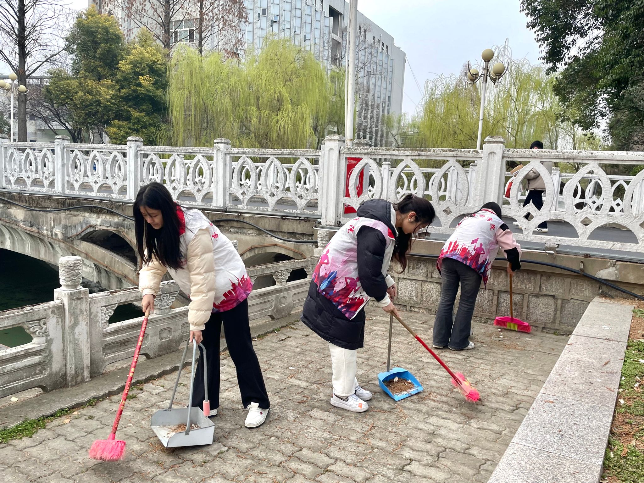 活动当日,志愿者们早早集合,身着统一服装,精神抖擞。在领取清扫工具后,大家迅速分组,奔赴校园各个角落。无论是教学楼的走廊、楼梯,还是图书馆周边,都有他们忙碌的身影。大家齐心协力,不放过一处死角,认真清扫地面垃圾、擦拭栏杆与宣传栏。