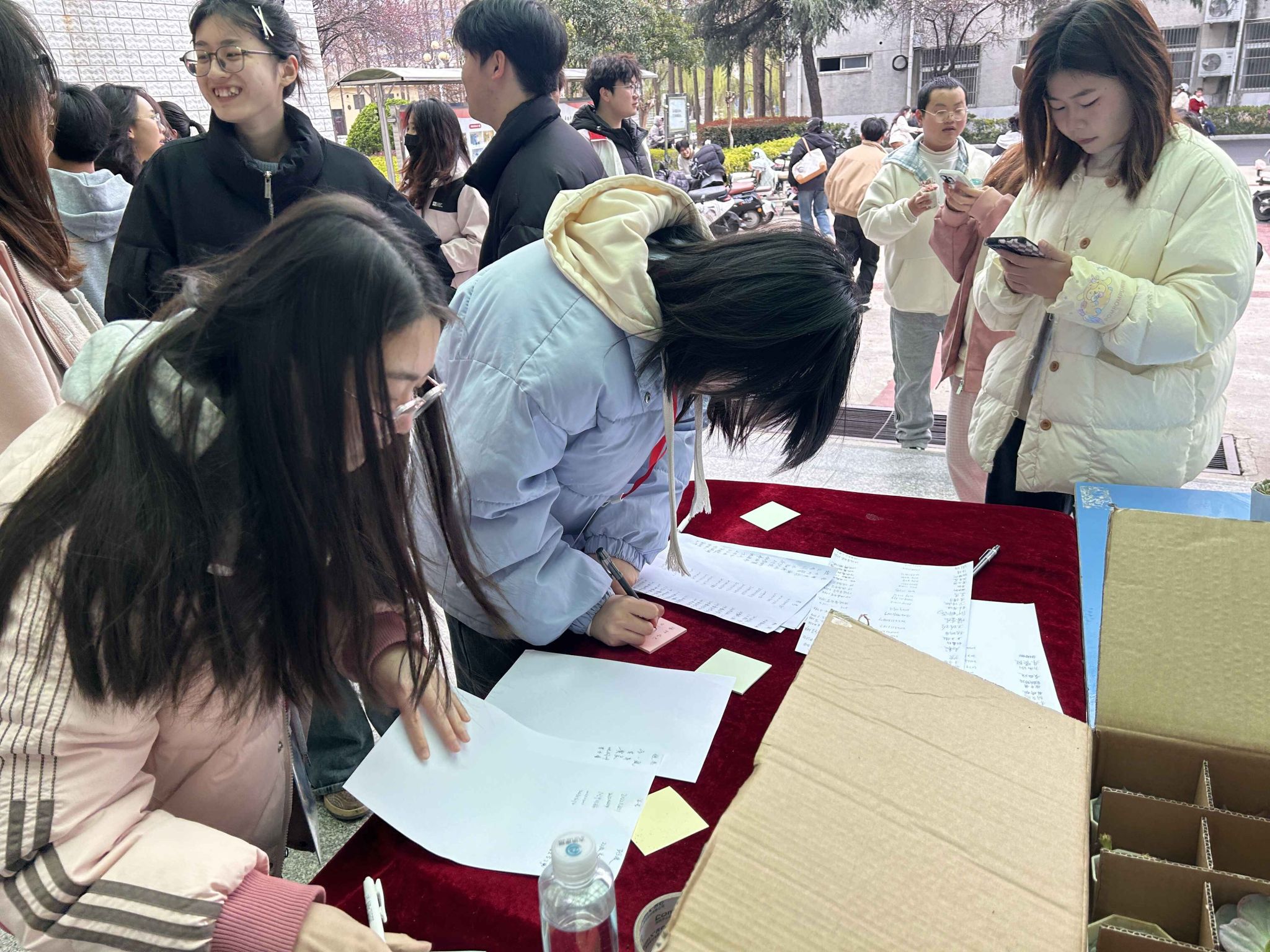 除了物品交易,活动现场还设置了春日大树展板,同学们纷纷将写有关心理或春天的习语和暖心便签贴在春日大树展板中,鼓励同学们关注自身心理健康。此外,同学们也可以通过分享春日照片,换取一盆多肉植物,以更加阳光的心态面对学习和生活。活动现场热闹非凡,大家纷纷表示,这样的活动不仅让旧物有了新的价值,更传递了爱心与温暖。