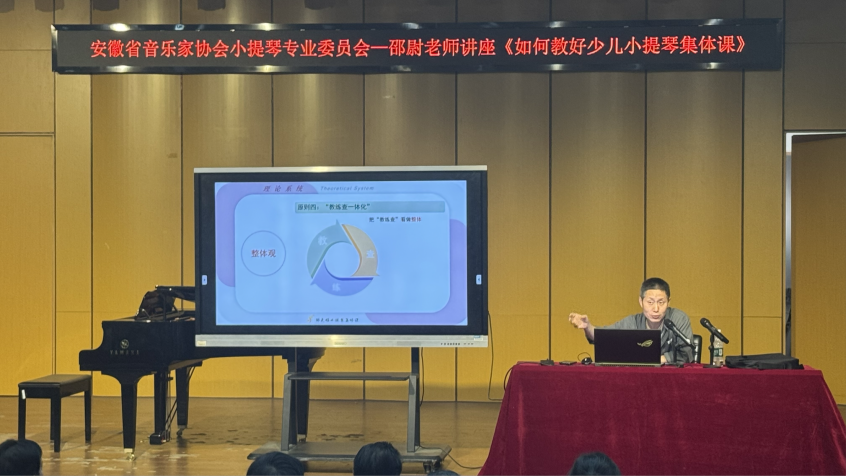 会后,参会人员移步至演出厅学习由邵尉老师主讲的报告《如何教好少儿小提琴集体课》。
