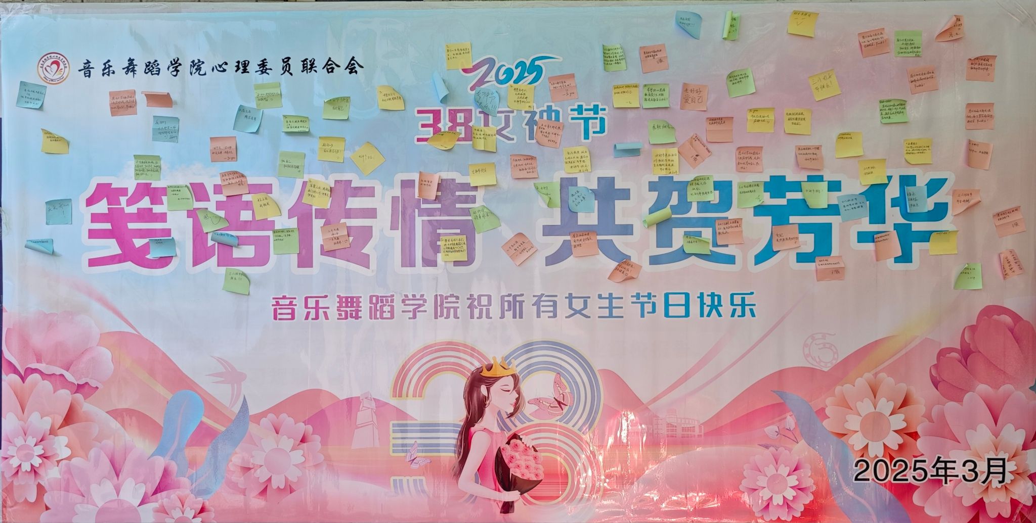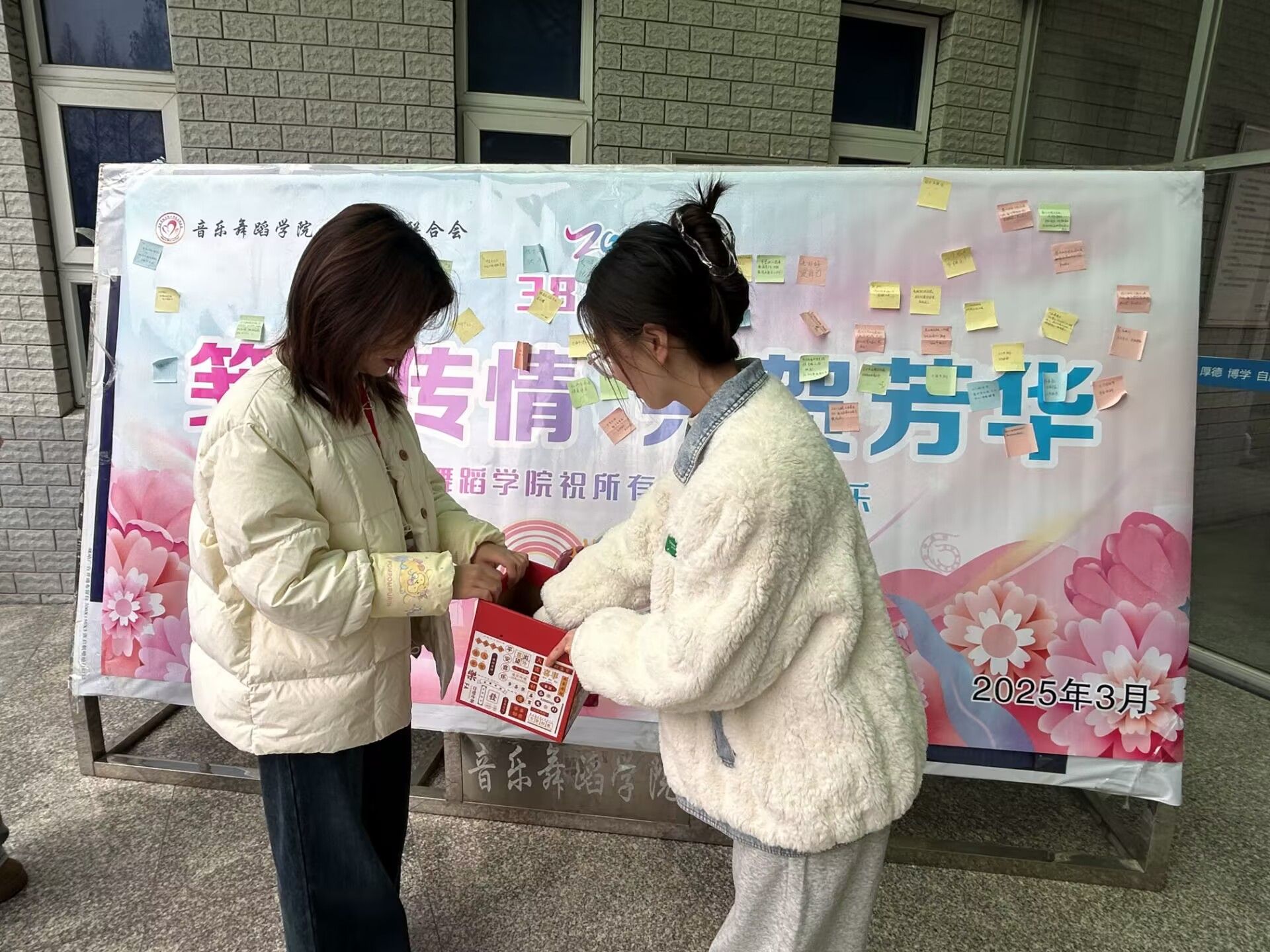在“三八”妇女节来临之际,3月7日,在韶华楼南门小广场,音乐舞蹈学院心理委员联合会开展“笺语传情,共贺芳华”为主题的庆祝活动,为学院女教师及女同学送上了诚挚的节日祝福与关怀。
