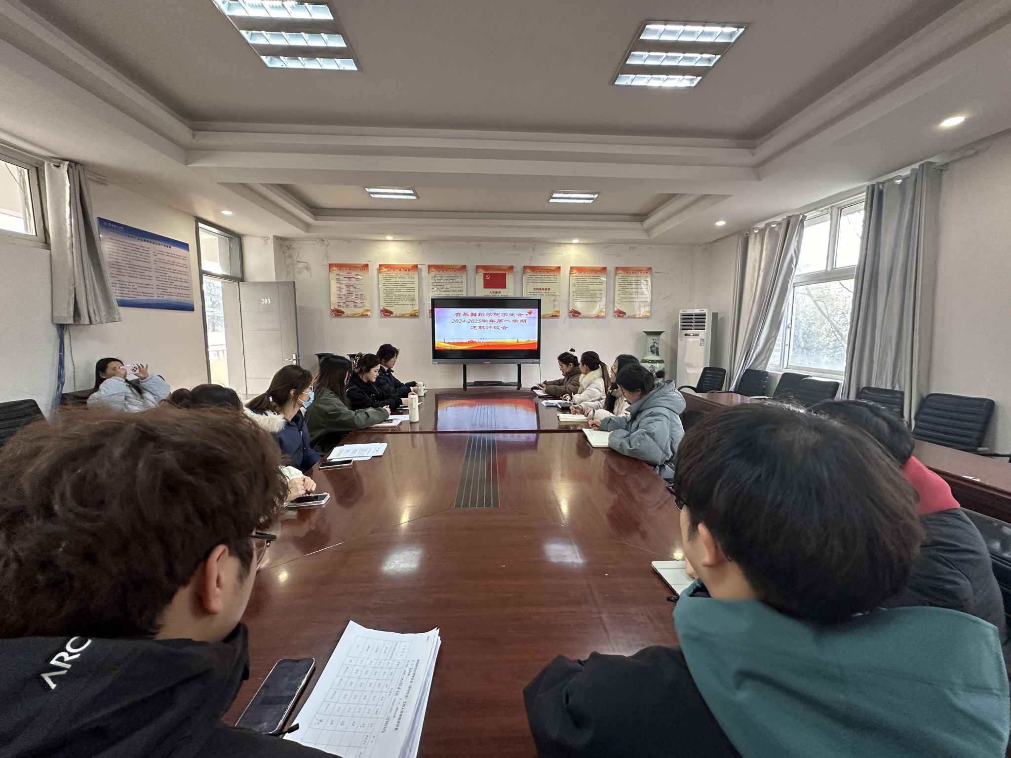 为推进学生会改革,贯彻落实《关于推动高校学生会(研究生会)深化改革的若干意见》的相关要求,按照《阜阳师范大学学生会工作考核实施细则(试行)》的有关规定,2月26日下午,音乐舞蹈学院学生会2024-2025学年第一学期述职评议会在韶华楼203会议室举行。院团委张静静老师、2023级辅导员楚彬杰、2024级辅导员胡玉然以及学生会主席团和部门负责人参会,团委负责人孙丹丹主持会议。