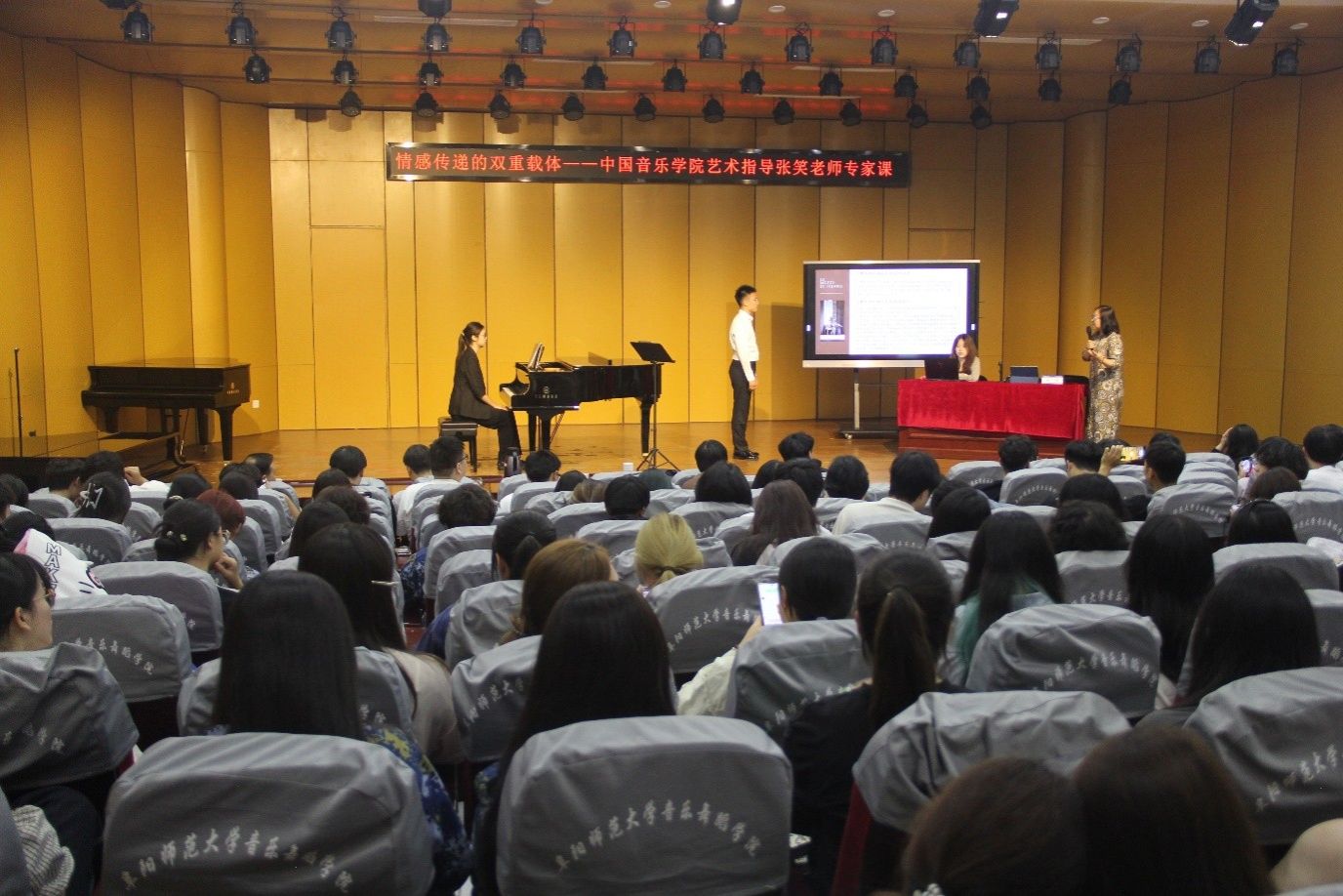 为深化声乐与钢琴合作领域的教学研究,提升师生专业素养,加强校际学术交流,9月11号上午,音乐舞蹈学院邀请中国音乐学院张笑副教授做题为“情感传递的双重载体——声乐与钢琴合作的音乐表达技巧解析”的专家课教学展示活动。学院副院长程敏主持报告会,本科生、研究生同学及各教研室教师参加学习。