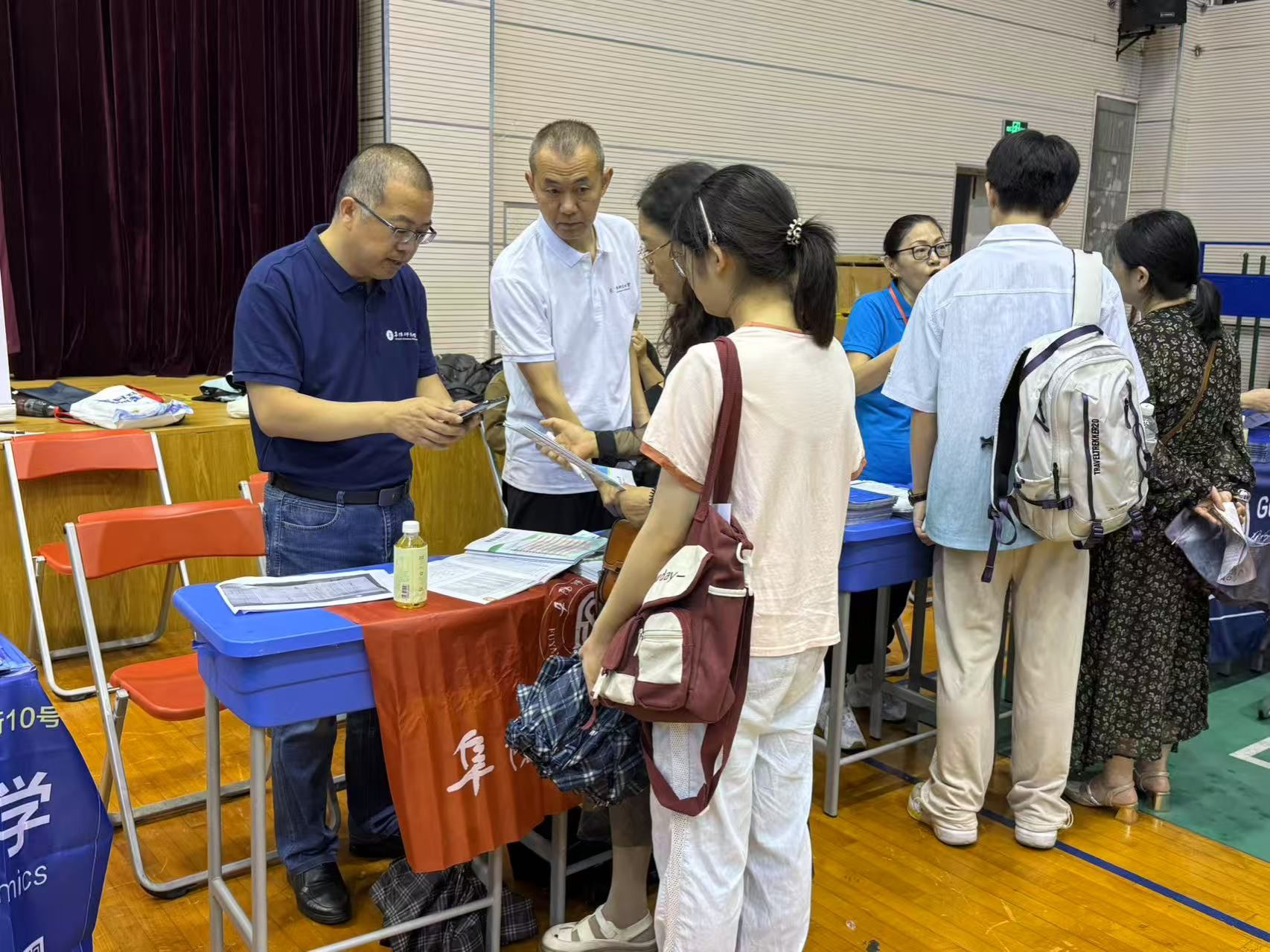 咨询会现场,设置了宣传展板,发放精心准备的招生简章和报考指南,详细介绍了阜阳师范大学的学科特色、专业优势、人才培养模式以及在皖招生计划和政策吸引了众多考生和家长驻足咨询。招生组成员耐心细致地解答关于专业选择、录取分数线、就业前景等方面的疑问,结合实际案例为考生提供个性化的报考建议,让考生和家长对报考我校有了更直观、深入的认识。