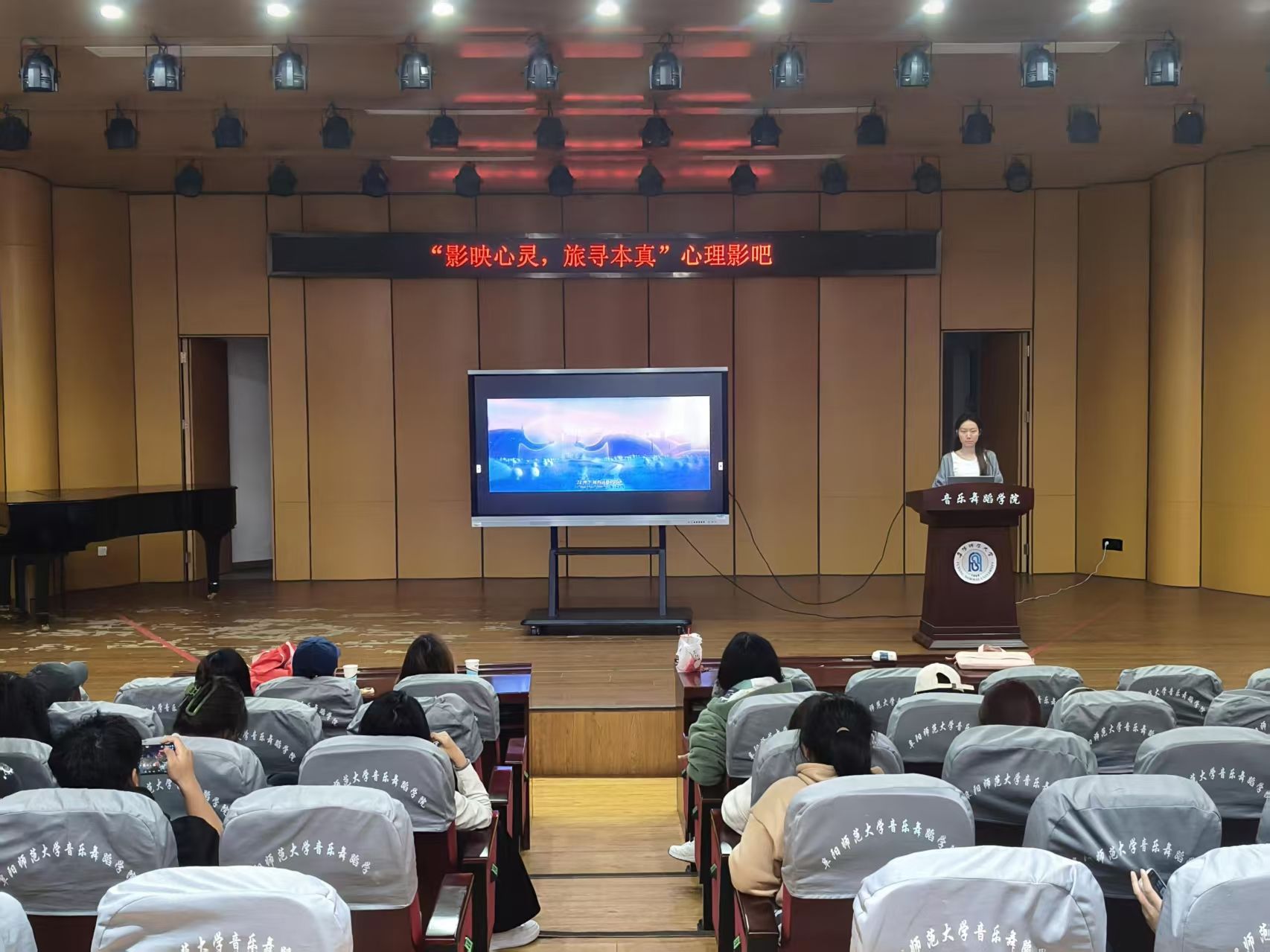 为丰富校园心理健康文化,缓解同学们在紧张学业与艺术追求中积累的压力,10月16日晚上,音乐舞蹈学院心理委员联合会在学院小礼堂成功举办“影映心灵 旅寻本真”主题心理影吧活动,组织同学们共同观看了皮克斯年度治愈之作《心灵奇旅》。本次活动旨在以电影为桥梁,以心理学视角为纽带,引导大家在光影流转间卸下疲惫,在交流分享中寻回对生命的热爱与心灵的宁静。