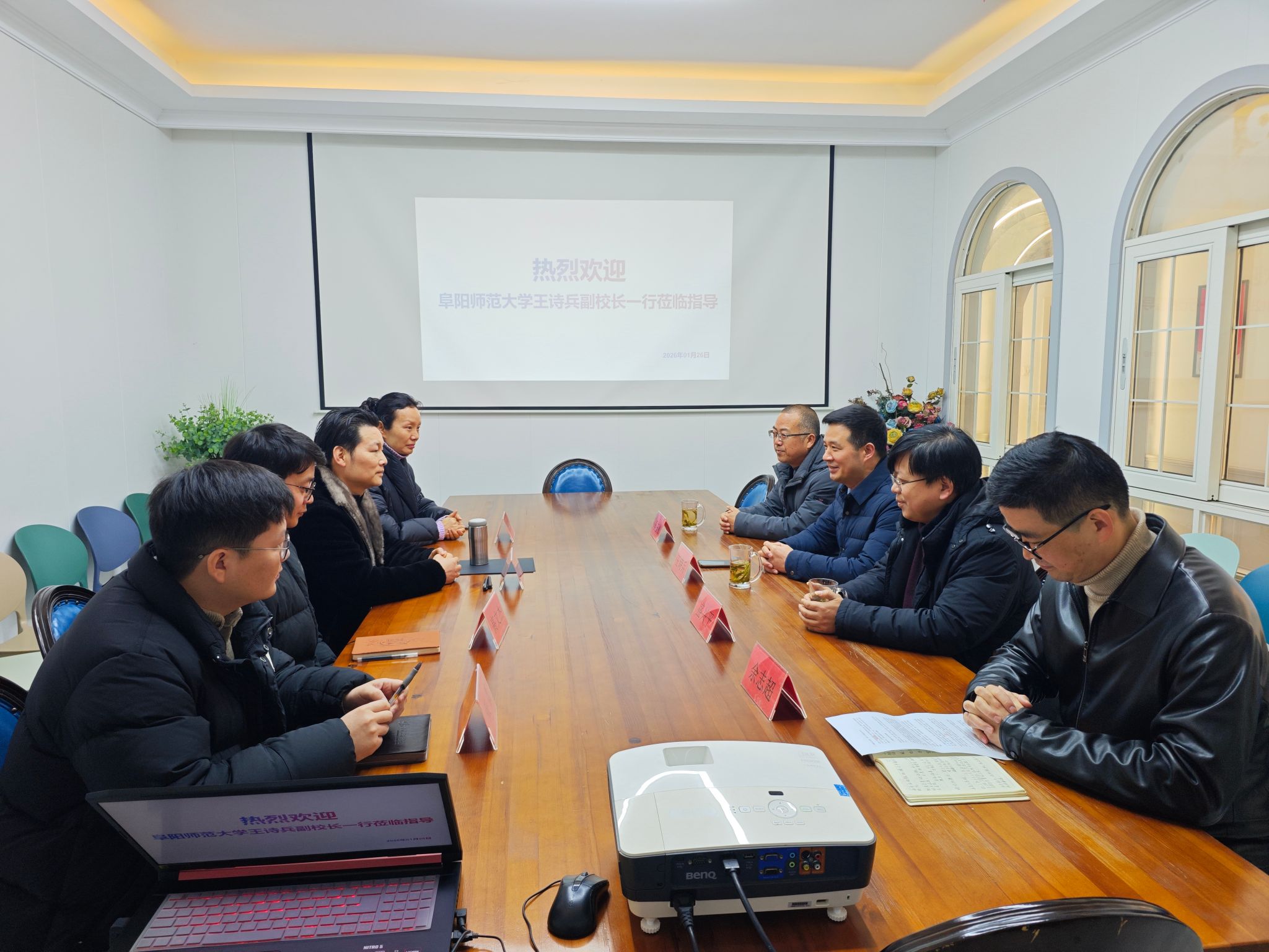 为深入推进访企拓岗促就业工作,深化校企合作与产教融合,1月26日,阜阳师范大学党委常委、副校长王诗兵一行莅临合肥中岸艺术学校开展走访交流,双方就人才培养、就业合作、科研项目共建等事宜深入洽谈,并成功签署音乐作品创作横向项目合作协议。科研处处长盛兴平,音乐舞蹈学院党委副书记马玉海,余志超教授陪同参加活动。合肥中岸艺术学校校长、阜阳师范大学音乐舞蹈学院校友高怀存热情接待校方一行。
