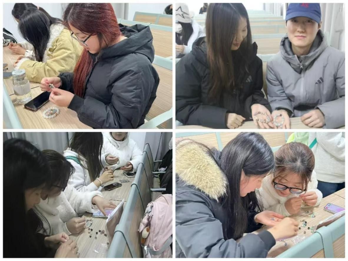 本次活动设置了“巧手穿手串”与“暖心写祝福”两大精彩环节。