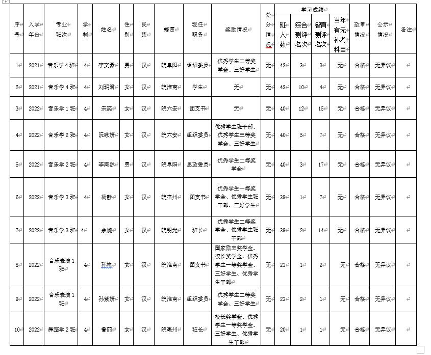 根据本人申请,组织培养,班级推荐,学院考评,经音乐舞蹈学院学生党支部研究,拟吸收杨李文豪等10位同志为中共预备党员,现将其有关情况予以公示。