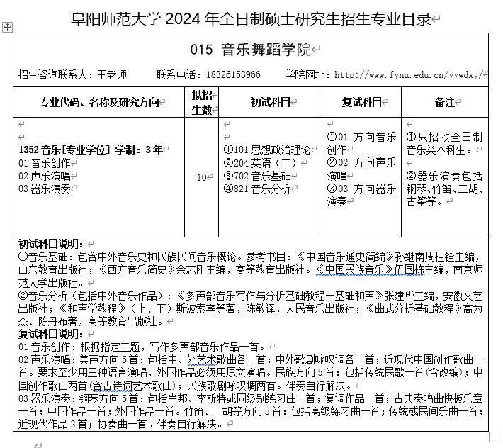 上一条:阜阳师范大学音乐舞蹈学院2024年硕士研究生招生考试复试成绩汇总表