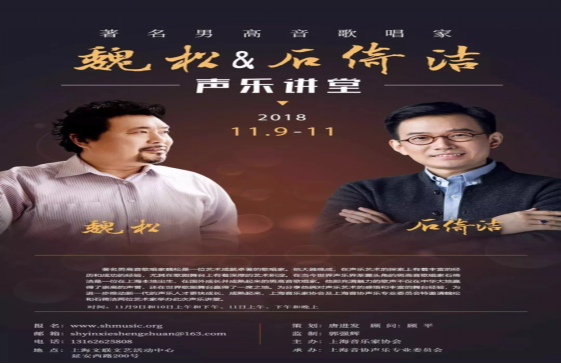 音乐,是反映⼈类现实⽣活情感的⼀种艺术,音乐,能提高人的审美能⼒,净化⼈们的⼼灵,音乐,能为大家的耳朵带来听觉上的享受。我们通过 音乐来抒发我们的情感,或悲伤,或抑郁,或开心,音乐他丰富我们的精神世界为我们的灵魂注入生命。2018年为了加强我校乐学院学⼦对⾳乐的理解与体会,不断拓宽学⼦的视角与眼界。在音乐舞蹈学院声乐教研室的带领下,本着自愿的原则,多名学⼦结伴前往魔都,参加了由上海音乐家协会主办,上海音协声乐专业委员会承办的为期三天的“魏松、石倚洁声乐讲堂”。