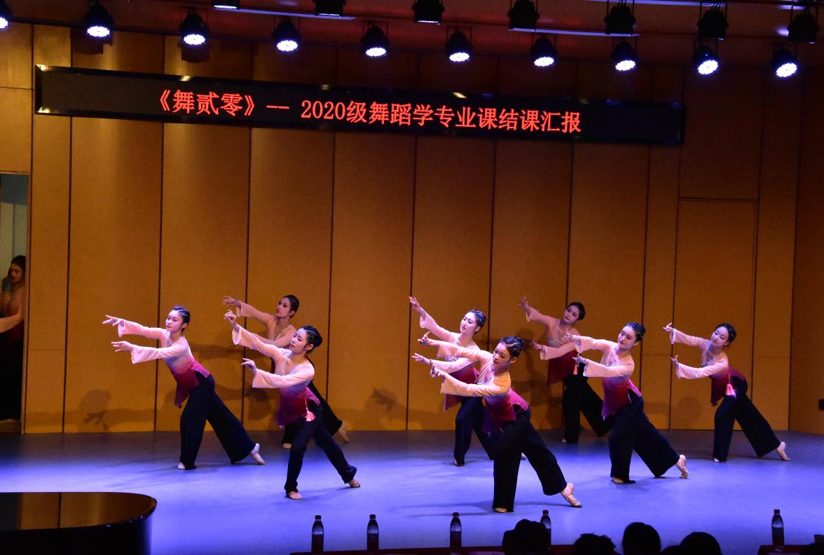 本次结课以舞台汇报的形式充分展现舞蹈学的专业素养、舞台表现和综合素质,不仅是三年来学习成果的展示,更是在主题选材、舞美设计等方面强化课程思政建设,深度融入中华优秀传统文化元素,以舞蹈表演形式讲好中国故事,将艺术教育与铸牢中华民族共同体意识相融合。舞蹈班学生们凭借扎实的基本功、精湛的技巧和饱满的热情为在场观众献上了一场精彩绝伦的视听盛宴。在舞者们的优美身姿下,一个个充满艺术感染力的舞蹈动作,一幅幅具有民族特色的美丽画卷呈现在观众眼前。台上激情投入,台下掌声雷动。2020级舞蹈学1班也通过刻苦钻研和勤奋训练,在专业技能和舞台表演能力逐步提高,通过本次专场演出,同学们更加坚定了对艺术舞台的追求和执着。新时代新征程上,音乐舞蹈学院将持之以恒做好教育教学各项工作,坚定文化自信,坚持守正创新,通过更多有温度、有深度的高质量文艺作品,回应时代命题,以舞载道,以舞化人,为繁荣社会主义文化事业提供文艺人才支撑。