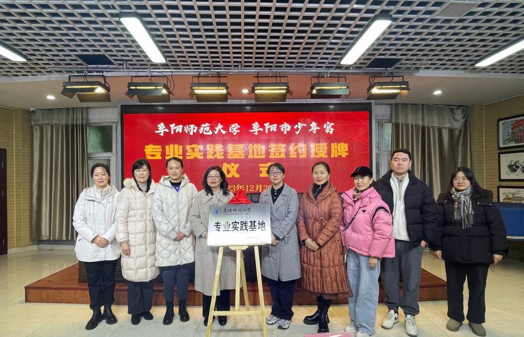 12月20日下午,舞蹈学专业师生赴阜阳市少年宫参观交流学习。音乐舞蹈学院程敏院长与阜阳市少年宫党支部书记葛玲玲主任现场签订共建专业实习基地协议书,并进行了阜阳师范大学专业实践基地授牌仪式。
