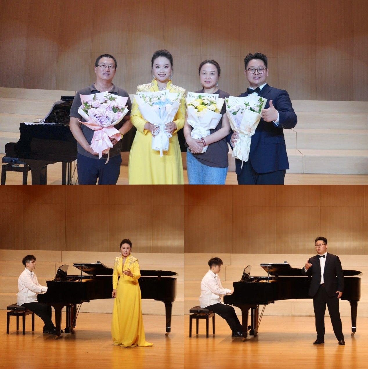 7月3日晚举行的师生交流音乐会将活动推向高潮。三校师生同台献艺,我院青年教师席亚倩演唱的民族歌剧《沂蒙山》选段《沂蒙山永远的爹娘》和青年教师王林开带来的《扶贫路上》选段《来不及》,以其精湛的演唱技艺和深厚的情感表达赢得满堂喝彩。音乐会在全体演员合唱《我和我的祖国》的动人旋律中圆满落幕。