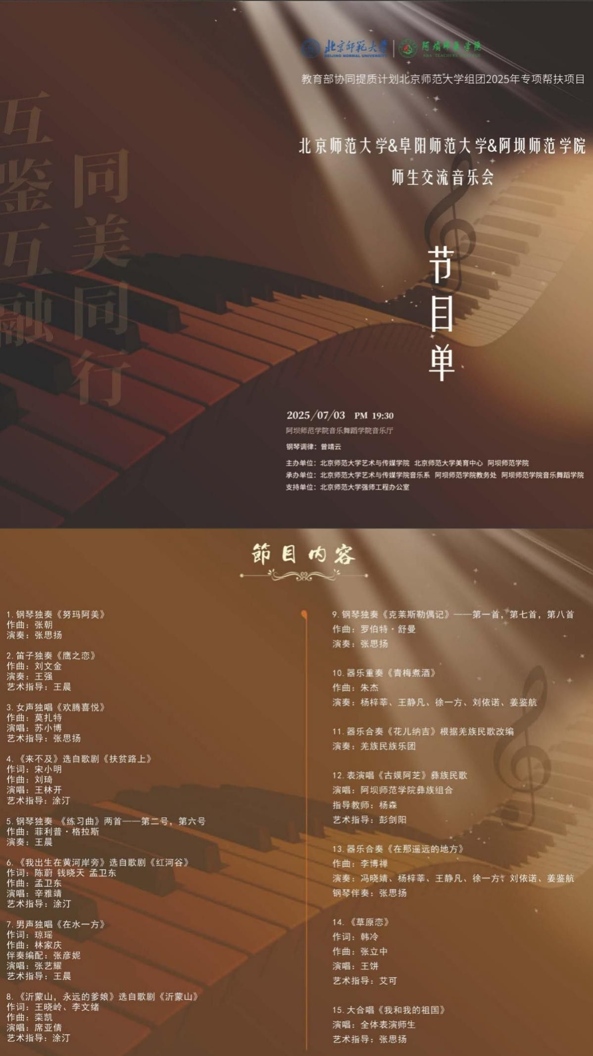 本次协同提质计划以“聚师范合力·谱美育新篇”为主题,包含7场高水平的专家讲座、学科建设研讨会和师生交流音乐会。活动聚焦音乐教育人才培养、学科专业建设与教学改革创新,为新时代音乐师范教育发展探索新路径。