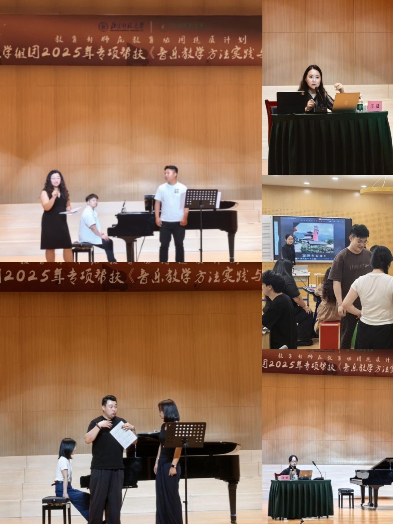 为深入贯彻落实习近平总书记关于教育的重要论述,扎实推进《新时代基础教育强师计划》实施,6月30日至7月4日,由北京师范大学艺术与传媒学院发起的教育部师范教育协同提质计划北京师范大学2025年组团《音乐教学方法实践与运用》系列活动在四川省汶川县阿坝师范学院音乐舞蹈学院成功举办。北师大艺传学院音乐系、阿坝师范学院音乐舞蹈学院、阜阳师范大学音乐舞蹈学院、西昌民族幼儿师范高等专科学校和阿坝州中小学校的师生共同参与此次活动。阜阳师范大学音乐舞蹈学院作为核心参与单位,苏世奇教授、张成香副教授以及青年教师席亚倩、王林开一行四人参加了此次为期四天的学术交流活动。