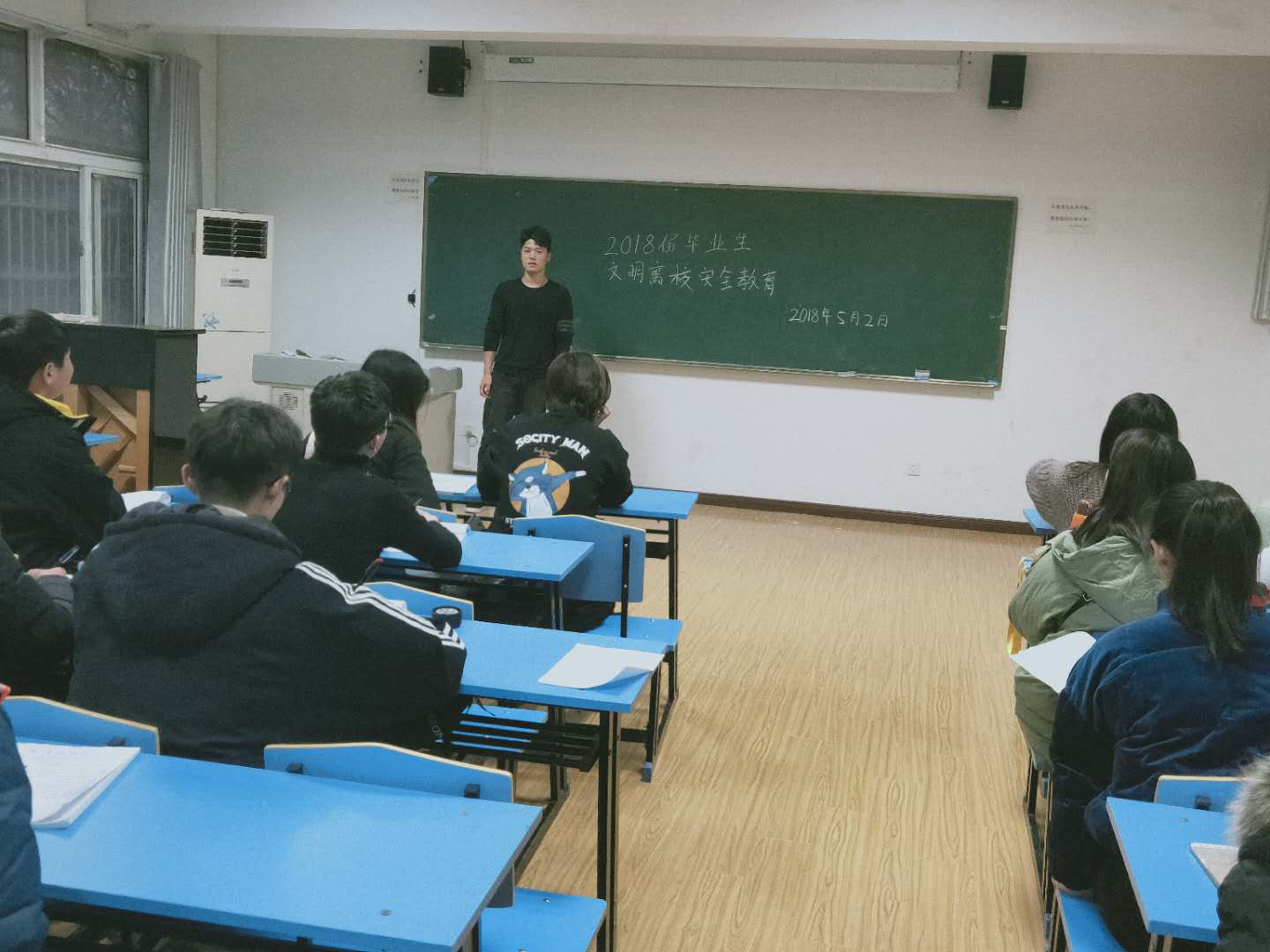 2018年5月2日阜阳师范学院音乐舞蹈学院在302教室开展了2018届毕业生文明离校安全教育。
