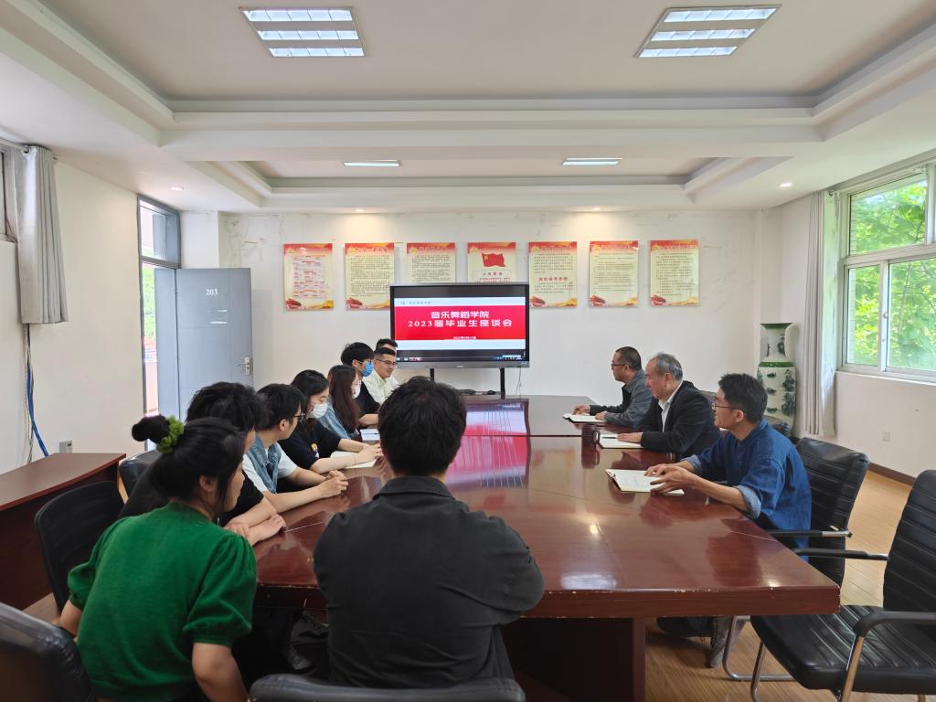 5月12日上午,音乐舞蹈学院在韶华楼203会议室召开2023届毕业生座谈会,党总支书记程建、副书记马玉海出席会议,王国新等10名2023届毕业生代表参加座谈交流。