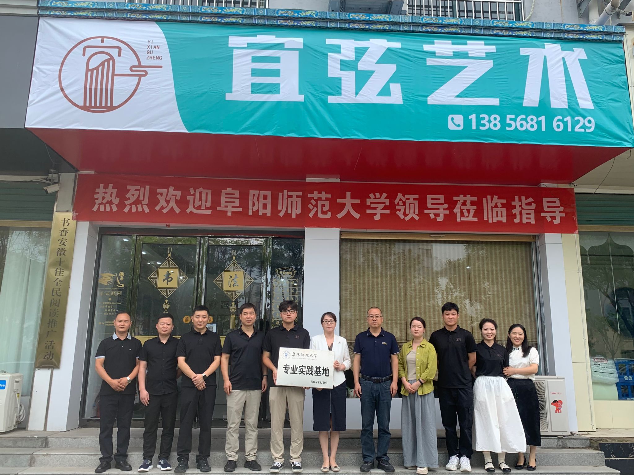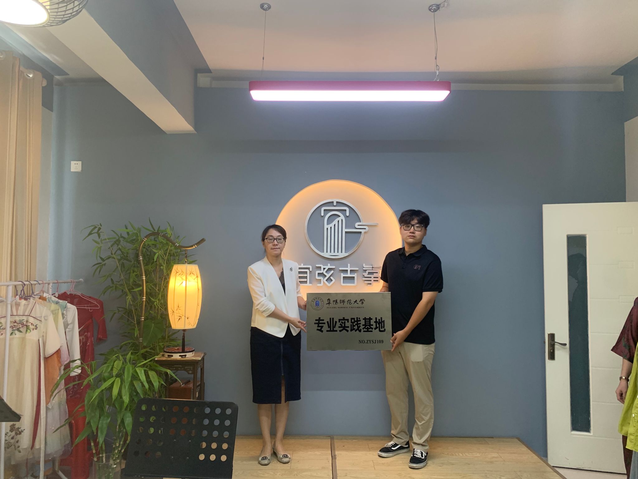 在与会人员共同见证下,宜弦艺术负责人与程敏进行就业合作签约,共建亳州市宜弦文化艺术有限公司阜阳师范大学音乐舞蹈学院专业实践基地。