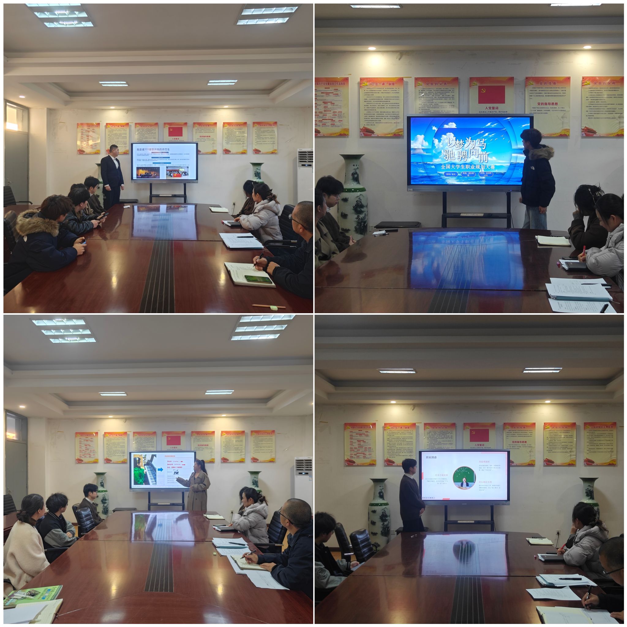 为积极响应教育部关于举办全国大学生职业规划大赛的号召,切实推进大学生生涯教育与就业指导工作,11月20日,音乐舞蹈学院在韶华楼203会议室举行了2025年大学生职业规划大赛院级选拔赛决赛。本次大赛由全体辅导员担任评委。