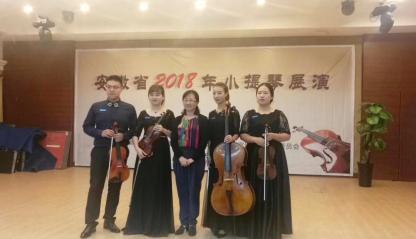 由我校音乐舞蹈学院戚建伟、胡馨天老师带领的甘琪雯、鲁安君等四位同学组成的弦乐四重奏,经过半年多的辛勤准备,以一曲根据《葬花吟》所改编成的四重奏作品震撼全场,获得重奏组第一名的好成绩,甘琪雯、余佳慧同学在独奏成年组中获得了良好展演选手的好成绩,两位老师也因此获得了展演优秀指导教师的称号。