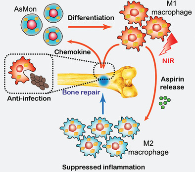 Miusi Shi, Peng Zhang, Qin Zhao, et al. Dual Functional Monocytes Modulate Bactericidal and Anti‐Inflammation Process for Severe Osteomyelitis Treatment, Small, 2019.