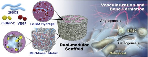 Wei Tang, Yuanman Yu, Jing Wang, et al. Enhancement and orchestration of osteogenesis and angiogenesis by a dual-modular design of growth factors delivery scaffolds and 26SCS decoration. Biomaterials, 2019.
