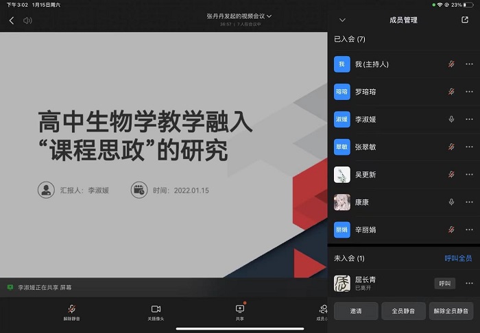 百年大计,教育为本。为提高研究生在学术方面的理论素养,2022.1.15日抗衰老中草药安徽省工程技术研究中心学科教学(生物)研究生寒假第一次的学术例会在线上召开,张丹丹同学主持本次会议。