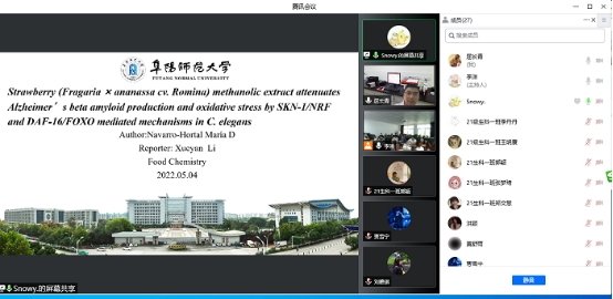 本次例会中对《Strawberry (Fragaria × ananassa cv. Romina) methanolic extract attenuates Alzheimer’s beta amyloid production and oxidative stress by SKN-1/NRF and DAF-16/FOXO mediated