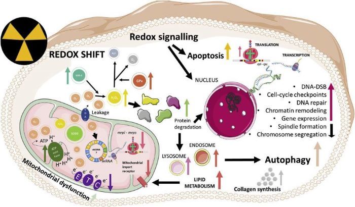 研究人员利用荧光报告基因和两种比率生物传感器(HyPer 和 Grx1-roGFP2)研究了活性氧(H2O2)的产生和活性氧(SOD1和 Grx)的激活。结果表明,辐射剂量率≤10mgyh-1条件下,防御机制能够阻止氧化应激的表现。在剂量率≥40mgyh-1时,自由基的连续形成引起氧化应激转录组反应,包括线粒体功能、蛋白质降解、脂质代谢和胶原合成的DNA 修复、细胞周期检查点、染色体分离和染色质重塑的基因的差异调控表明了这一点。最终,γ 射线照射引起了生殖毒性作用,剂量率≥40mgyh-1时,每只成年雌雄同体线虫后代数量减少了20% 以上,并伴随着与生殖系统、细胞凋亡、减数分裂功能、配子发育和受精有关的300多个基因的下调。(撰稿:杨晓宇)