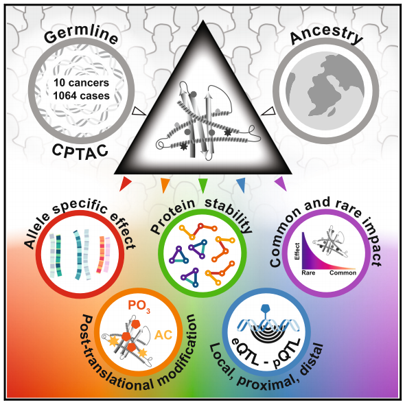 在癌症研究领域,我们常常会听到“基因突变”这个词,但你知道吗?除了后天发生的基因突变,我们从出生时就携带的先天基因(即生殖系基因)也在癌症的发生和发展中扮演着关键角色;这些先天基因变异就像隐藏在我们身体里的“密码”,悄无声息地影响着细胞的功能,甚至决定了癌症的形成、演变和对治疗的反应。近日,一篇发表在国际杂志Cell上题为“Precision Proteogenomics Reveals Pan-Cancer Impact of Germline Variants”的研究报告中,来自西奈山伊坎医学院等机构的科学家们通过研究首次揭示了这些先天基因变异对癌症的深远影响,有望为未来的癌症治疗带来新的曙光。