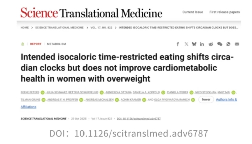 然而,一项发表于Science Translational Medicine的研究[1]却猝不及防地扫了兴。研究发现,在摄入的热量保持不变的前提下,仅限制进食的时间并不能改善胰岛素敏感性,也无法提升心血管代谢健康。