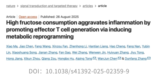 [1]Ma, X., Chen, J., Wang, F.et al. High fructose consumption aggravates inflammation by promoting effector T cell generation via inducing metabolic reprogramming. Sig Transduct Target Ther 10, 271 (2025). https://doi.org/10.1038/s41392-025-02359-9