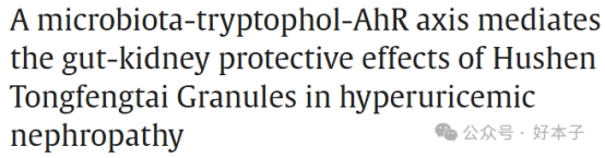题目:微生物群-色醇-AhR轴介导了护肾痛风泰颗粒对高尿酸血症肾病的肠肾保护作用