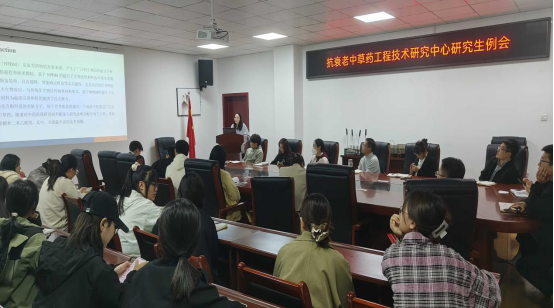 2024年10月 23 日,抗衰老中草药安徽工程技术研究中心研究生日常例会在躬行楼E215会议室召开。本次会议由姬云涛教授主持,并同蒋侠森博士、吴国火博士、杨京霞老师、王珍老师、韦兵老师、彭岩老师进行指导。