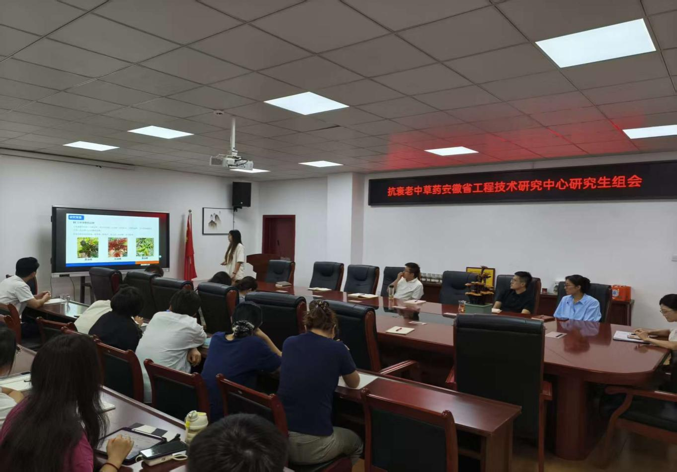 2025年9月10日,抗衰老中草药安徽工程技术研究中心研究生日常例会在躬行楼E215会议室召开。本次会议由吴国火老师主持,并同屈长青老师、姬云涛老师、杨京霞老师、韦兵老师、蒋侠森老师王珍老师、陈亮稳老师、林双虎老师和孟倩倩老师进行指导。