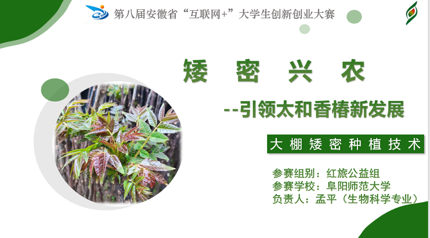2022年8月1日,安徽省第八届“互联网+”大学生创新创业大赛线上路演答辩圆满结束。抗衰老中草药安徽省工程技术研究中心学生参与项目2项入围省赛初赛,其中《矮密兴农--引领太和香椿新发展》晋级省级决赛。此次省赛路演答辩中,抗衰老工程中心学子以饱满的热情和奋发的精神面貌,展现了敢于创新、善于创造的青春风采,最终荣获省级银奖。
