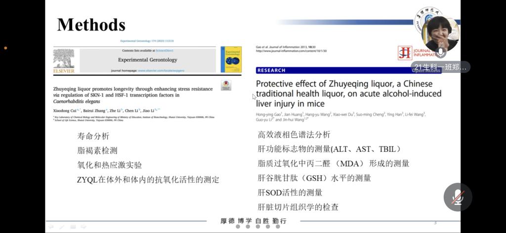 6月28日,抗衰老工程中心暑期第一次例会在线上召开,本次例会由22级研究生王鹏飞主持,屈长青教授、姬云涛教授、蒋侠森老师、杨京霞老师和吴国火老师进行指导。