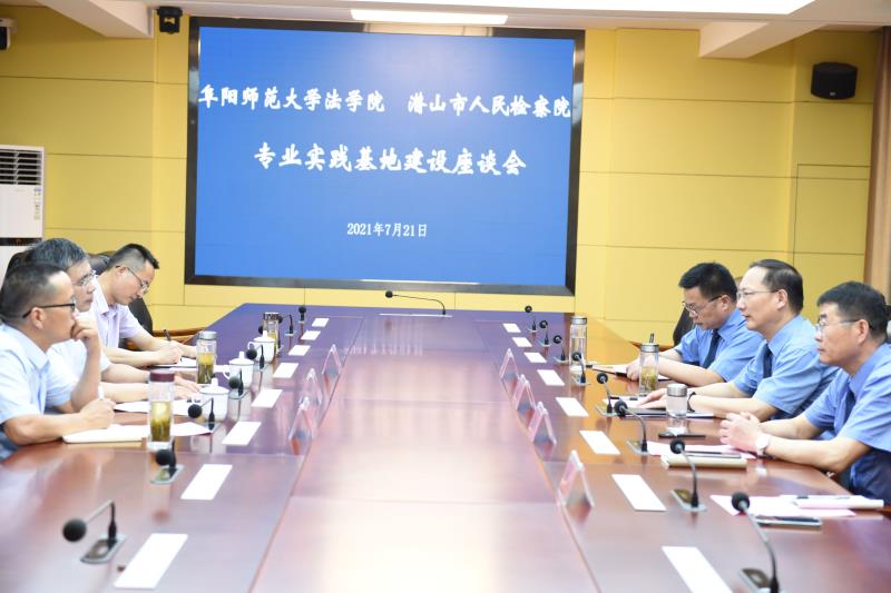 2021年7月21日,阜阳师范大学法学院党委副书记、院长余为青,王磊博士和陈元庆博士等一行3人前往潜山市参加法学专业实践基地挂牌和考察调研活动。潜山市人民检察院党组书记、检察长姚正文,党组成员、副检察长王洁望,办公室主任余龙云等陪同参加。