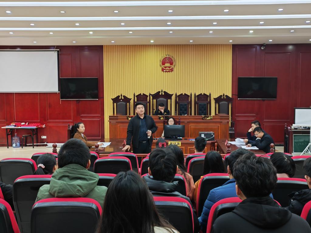 为增强法学专业学生法律职业素养和实践技能,根据法学专业见习活动安排,法学院于2021年11月27日下午在模拟法庭再次开展“模拟法庭进校园”活动。