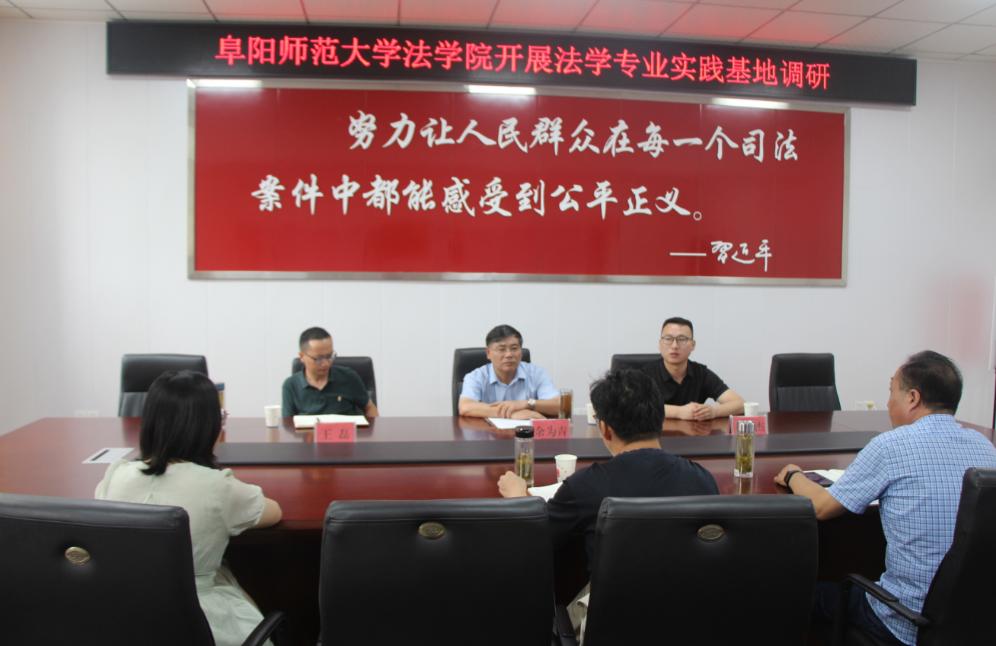 在座谈会上,阜阳师范大学法学院与潜山市司法局分别介绍了本单位及其本地区的法治建设状况,围绕法治人才培养、法律专业实习、基层法治实践难题与课题、法治培训与研究等内容进行深入交流,并共同表达出良好的合作愿景。