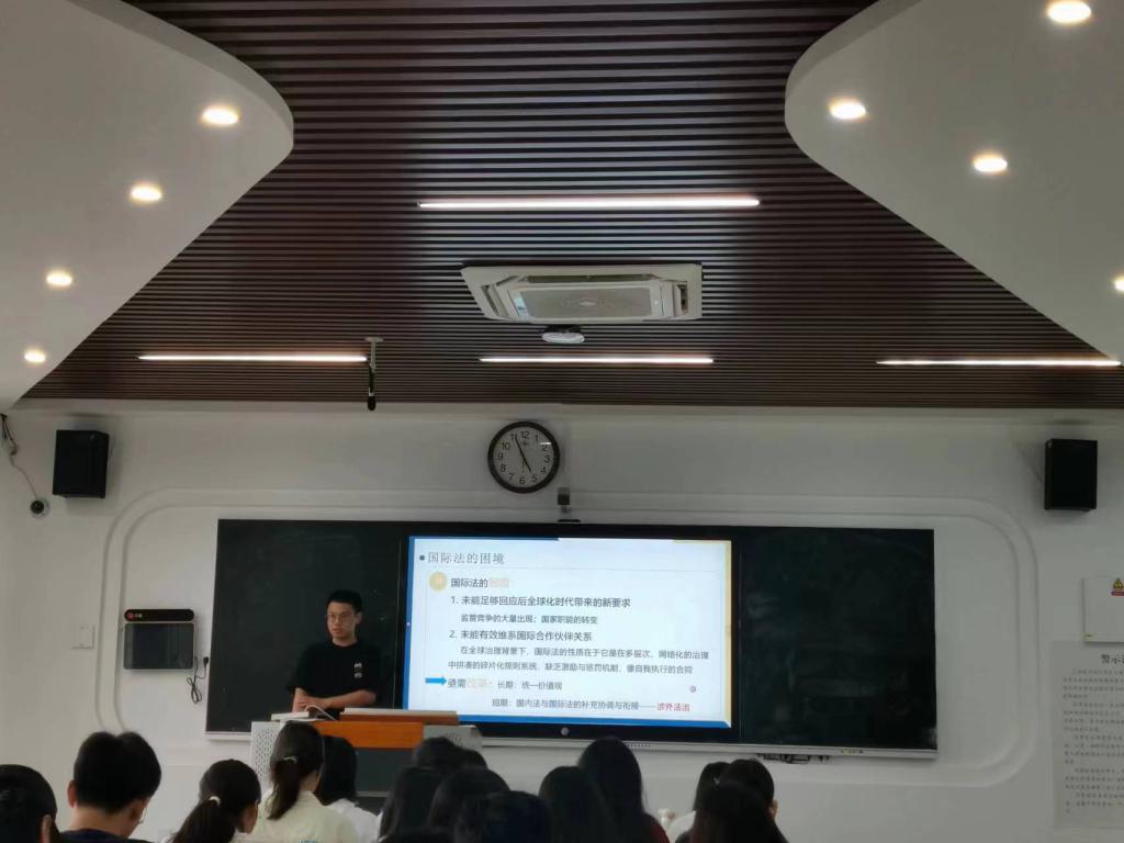 课程由王腾主讲,所讲课程为《国际法》课程。王腾备课认真、授课主次分明、重点突出。学生们思维活跃、课堂秩序好。