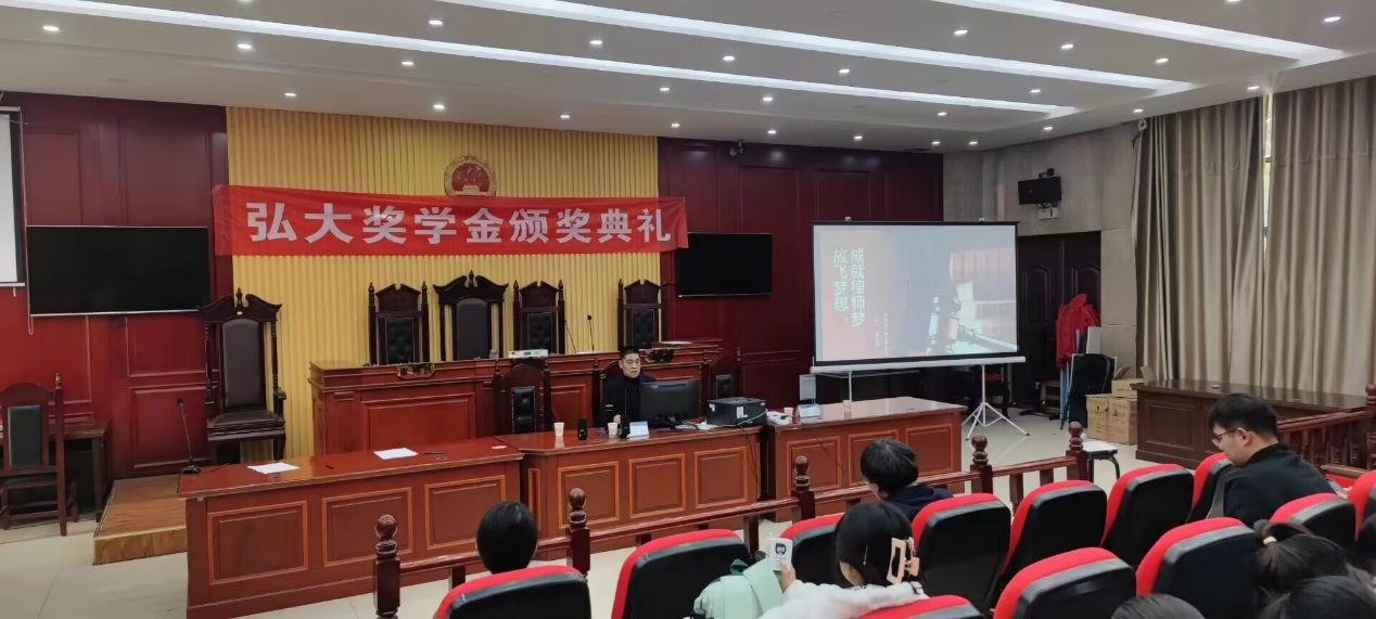 为增强法学专业学生对律师行业的了解和未来就业的认知,2023年11月21日,安徽弘大律师事务所主任蒋祥爱应邀在西湖校区模拟法庭作题为“放飞梦想,成就律师梦”专题讲座。讲座由法学院院长余为青主持,法学专业苗丽、王少杰、张玲、项亚萍等教师,以及2023级法学专业学生聆听了此次讲座。