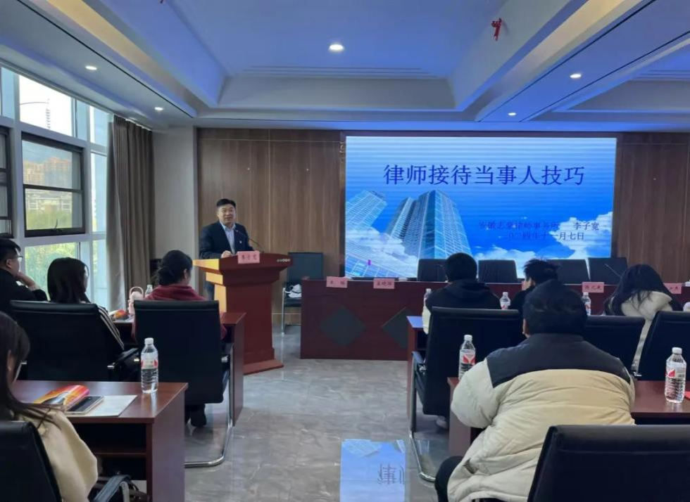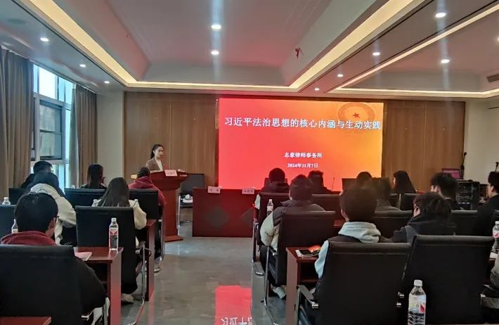 活动第三环节,孟晓丽以《习近平法治思想的核心内涵与生动实践》为题,从习近平法治思想的明确提出、核心要义和理论体系、生动实践三个方面,作了一场既有理论深度又有实践意义的宣讲。接着,李子宽以《律师接待当事人技巧》为主题,结合自身多年执业感悟,从律师必备素养、律师执业责任与理念、接待准备工作、接待过程注意事项、办案心得体会等视角作了一场生动实践讲座。讲座内容层次分明、案例生动、数据详实、娓娓道来,不仅是其丰富执业经验的理论总结,更是办案高超技能的倾囊传授,得到在场师生一致好评。