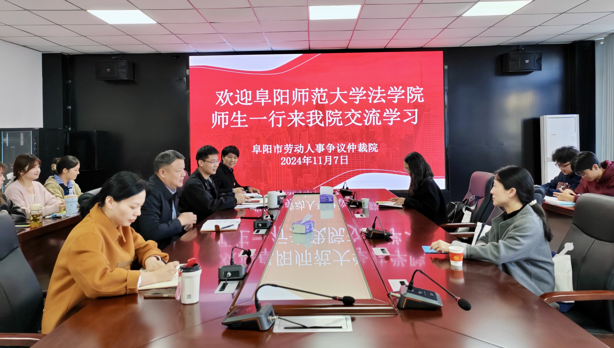 为了深化法学理论与实践的结合,为法学专业学生提供宝贵的实践经验和职业指导,2024年11月7日下午3点,法学院2023级法学五班的同学们在简洪利老师、项亚萍老师的带领下,前往阜阳市劳动人事争议仲裁院进行深入交流学习。