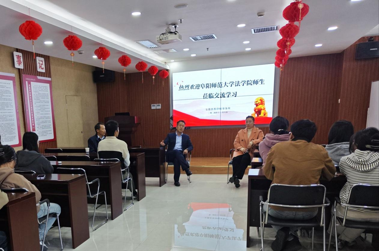 为增强法学专业学生对律师职业的了解,提升对法学专业实务技能的感性认识,2024年11月6日上午,在法学院李阳副书记、李民教授和项亚萍老师的带领下,2022级法学1班学生赴安徽淮都律师事务所开展专业见习活动。安徽淮都律师事务所管理委员会主任王广友律师热情接待了参加见习的师生。