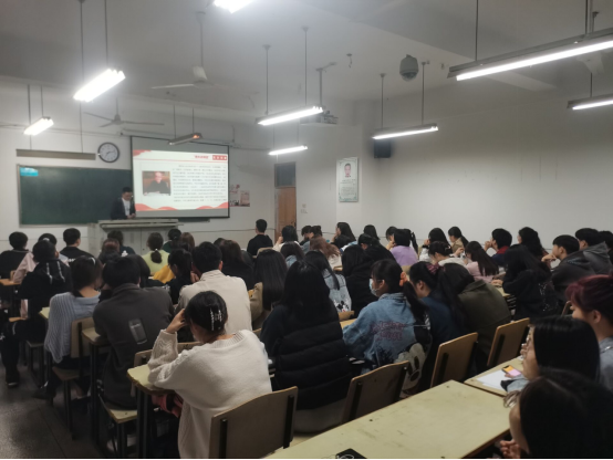 我院团委负责人、青年讲师团成员李阿康围绕“一大”的召开日期、闭幕日期以及代表人数等问题对中共“一大”进行了全面的介绍,并带领在场同学们一起回顾了革命先辈们的光辉事迹。他指出,作为新时代青年大学生,应当从历史中因应现实、关照自身,进一步深刻认识自身肩负的历史使命,不断增强听党话、跟党走的思想自觉和行动自觉,要牢记习近平总书记的教导努力成为堪当民族复兴重任的时代新人。